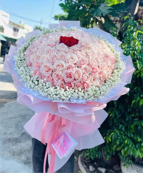🎀 Nơ lụa & giấy gói hồng pastel cao cấp – tăng vẻ lãng mạn, sang trọng cho tổng thể.